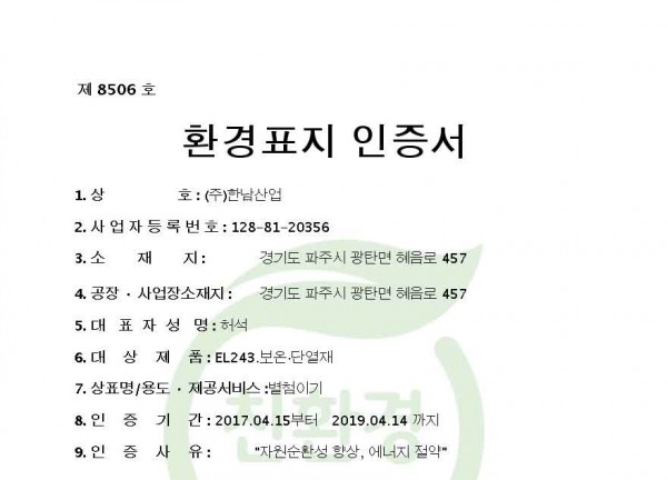 (자원순환)비드법 보온판 - (주)한남산업 ~2019.04.14