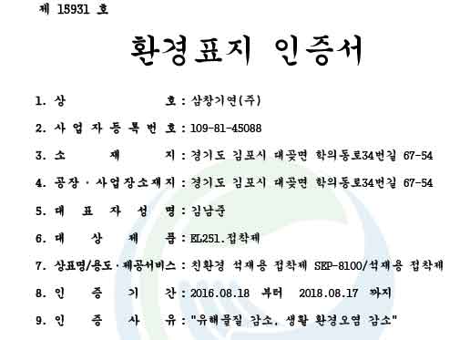 (유해물질,생활환경) 석재용 접착제 - 삼창기연 ~ 2018.08.17