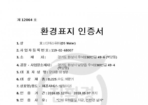 (유해물질,친환경설계) 수도계량기 - 디에스워터 ~2018.05.07
