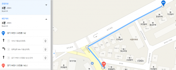 "도보거리란 가장 안전하고 편리한 길을 이용한 물리적 거리를 말함"